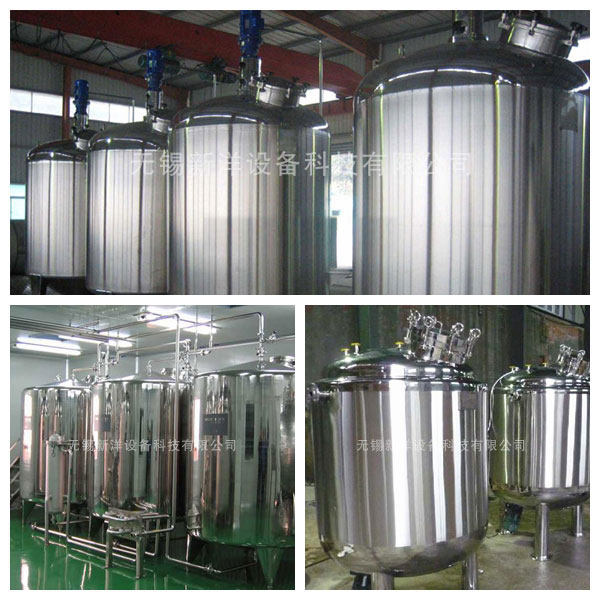不銹鋼儲罐設備分缸體、缸蓋、進料口、出料口,由不銹耐酸鋼304或316制成,罐體采用立式或臥式單層或雙層結構,并根據用戶要求充填保溫材料,按GMP技術條件進行,缸體內拋光,外部采用鏡面板或磨砂板保溫。頂部開設進水口、回流口、消毒口、清洗口、人孔并安裝空氣呼吸器, 且可與管道連接,便于連續進各種配料,缸底為錐度,出料口便于放料。